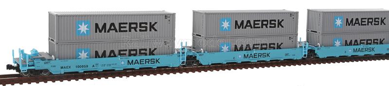 Набор из 5 платформ Gunderson Maxi-I с 40-футовыми контейнерами. Принадлежность Maersk #100059 (с 10 контейнерами)