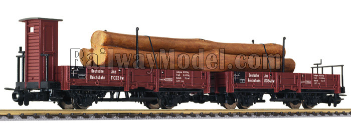 Сцеп из двух платформ с грузом брёвен. Принадлежность DR. Эпоха II