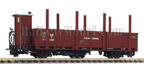 3-х осный полувагон со стойками и тормозной будкой, тип Olm. Принадлежность DR. Эпоха II