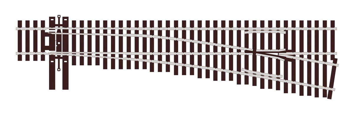 Стрелка правая, радиус 1092 мм R6 9,5°, длина 233,5 мм. Высота рельса 2,1 мм (код 83). Серия PECO UNIFROG.