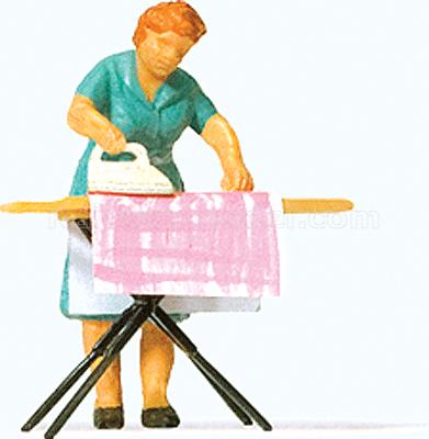 Женщина с утюгом гладит вещи