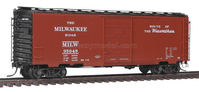 Полностью собранный 40' товарный вагон тип PS-1 с 7' дверью. Принадлежность Milwaukee Road #35049