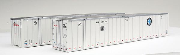 Набор из двух 53 футовых контейнеров Burlington Northern & Santa Fe #238030, 238534 с установленными внутри магнитами для крепления на металлическом корпусе вагона. Идеальны для платформ Gunderson MAXI-IV Double Stack производства KATO и любых других платформ для больших контейнеров. Сделано в Японии.