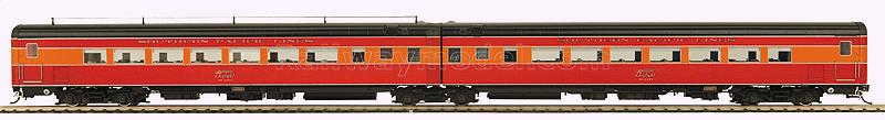 Набор из двух пассажирских вагонов Southern Pacific Daylight ##2462, 2461. Устновлено освещение, металлические поручни, великолепная детализация не только внутри, но и под вагоном. Рекомендуется минимальный радиус 22 дюйма (558,8 мм).