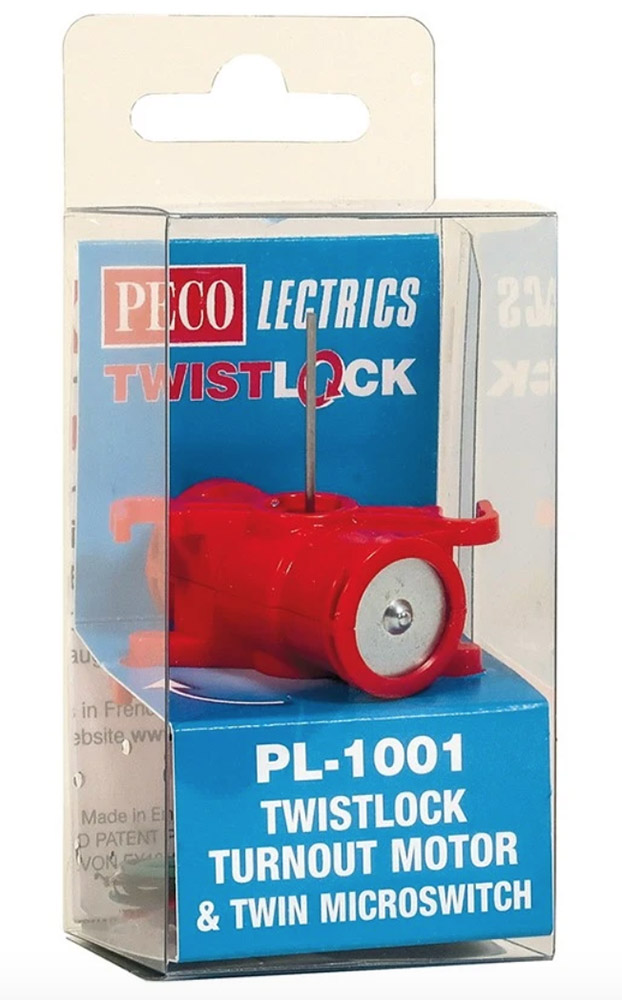 TwistLock - базовый электромагнитный двигатель для управления (в основном) стрелочными переводами и микропереключателем для переключения полярностей или для управления сигналами или подсветкой и т.д. Питание осуществляется от обычного источника питания 16 В переменного тока (и может потреблять до 3 ампер) и полностью совместим со всеми выключателями PECO, а также большинством выключателей других производителей.