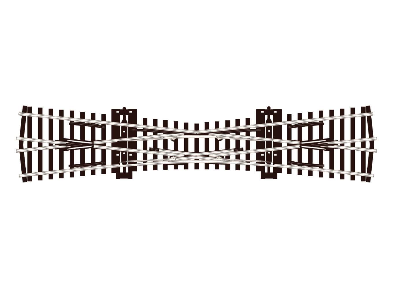 Стрелка частично перекрестная, радиус 610 мм 12°, длина 249 мм. С одного пути состав может двигаться только прямо, с другого пути состав может двигаться прямо или в сторону. Высота рельса 2,5 мм (код 100).